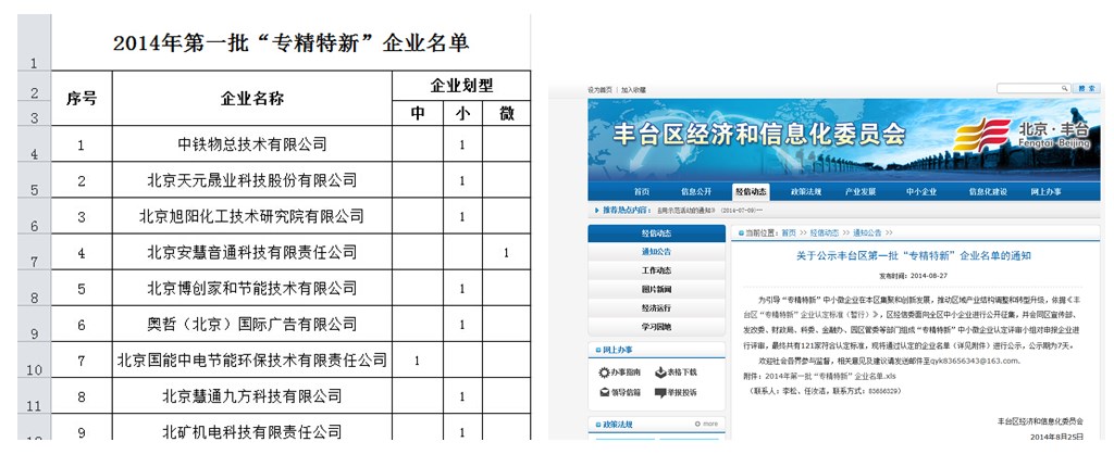 日前,我公司已通過豐臺區(qū)經(jīng)濟(jì)和信息化委員會認(rèn)定,被評為 “專精特新”企業(yè)。
