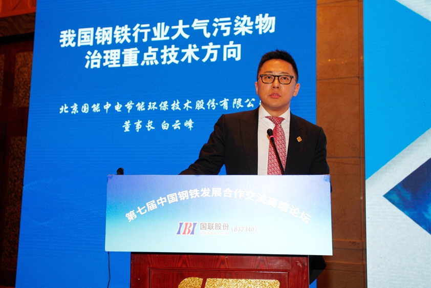 北京國能中電節能環保技術股份有限公司董事長白云峰先生以“我國鋼鐵行業大氣污染物治理重點技術方向”為題做了報告。